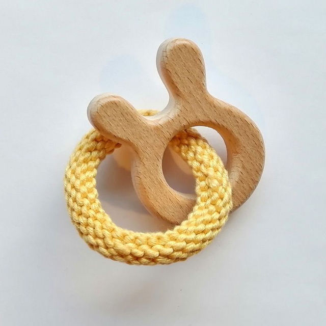 Purulelu helpottaa kutiavia ikeniä hampaiden puhjetessa ja tarjoaa samalla pienille sormille tutkittavaa. Neulotussa renkaassa on himmeä kiilto ja se on erittäin kulutusta kestävää pitkäkuituista puuvillaa.