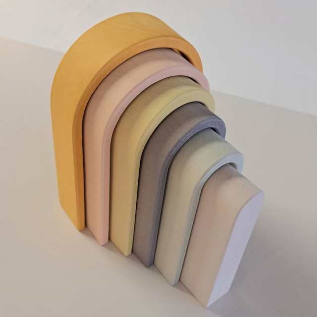 Puinen sateenkaari on kodin suosikkilelu. Pinottava sateenkaari sopii kaikenikäisille lapsille. Lapset keksivät paljon erilaisia tapoja leikkiä sillä, se voi olla tunneli, silta, aita, sänky, mitä vain kuvitella saattaa.